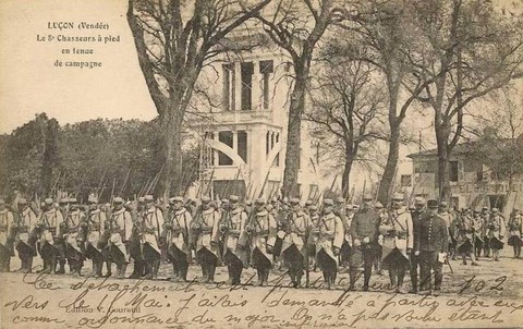 Constitution en 1914 3 bataillons, 2 citations à l'ordre de l'armée, fourragère verte