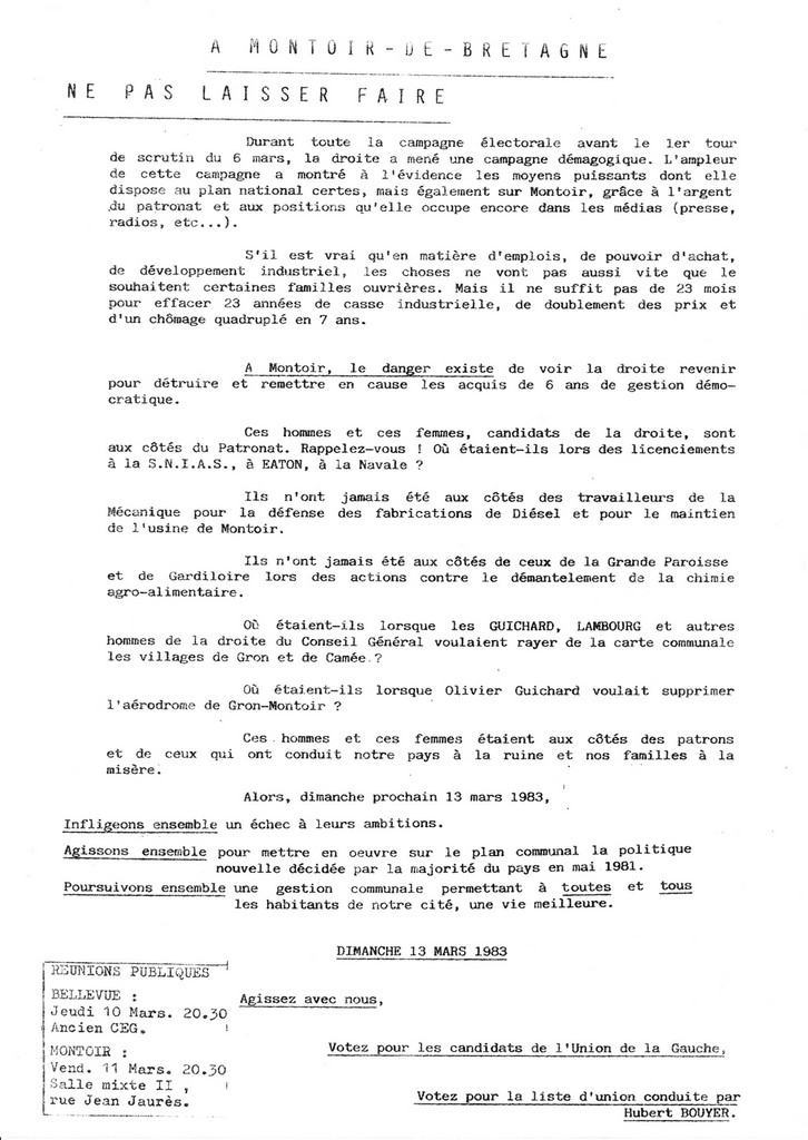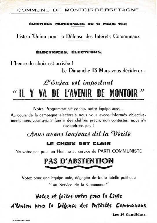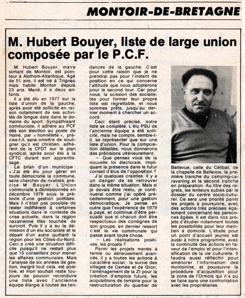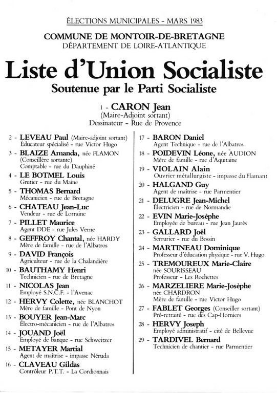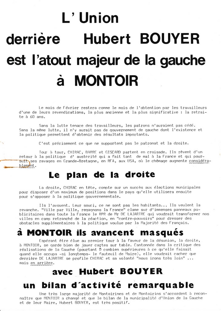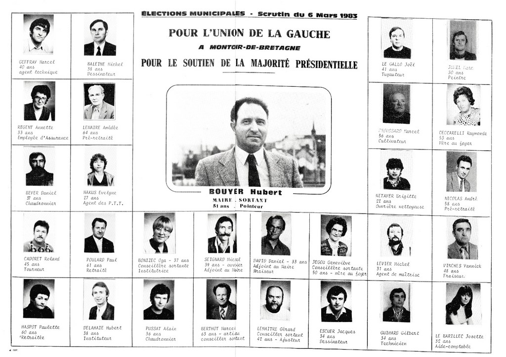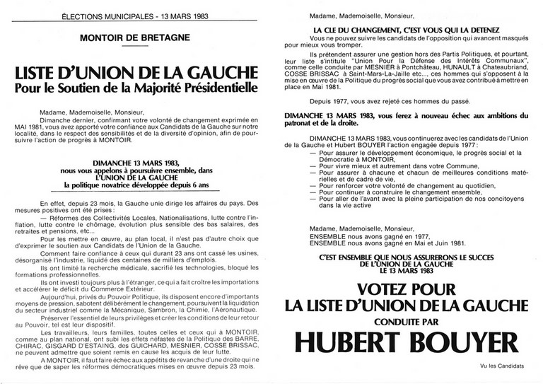 Liste Union de la gauche : 22 élus (51.24% 1398 voix) Hubert Bouyer,