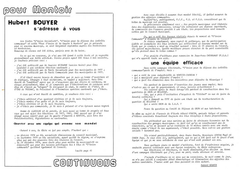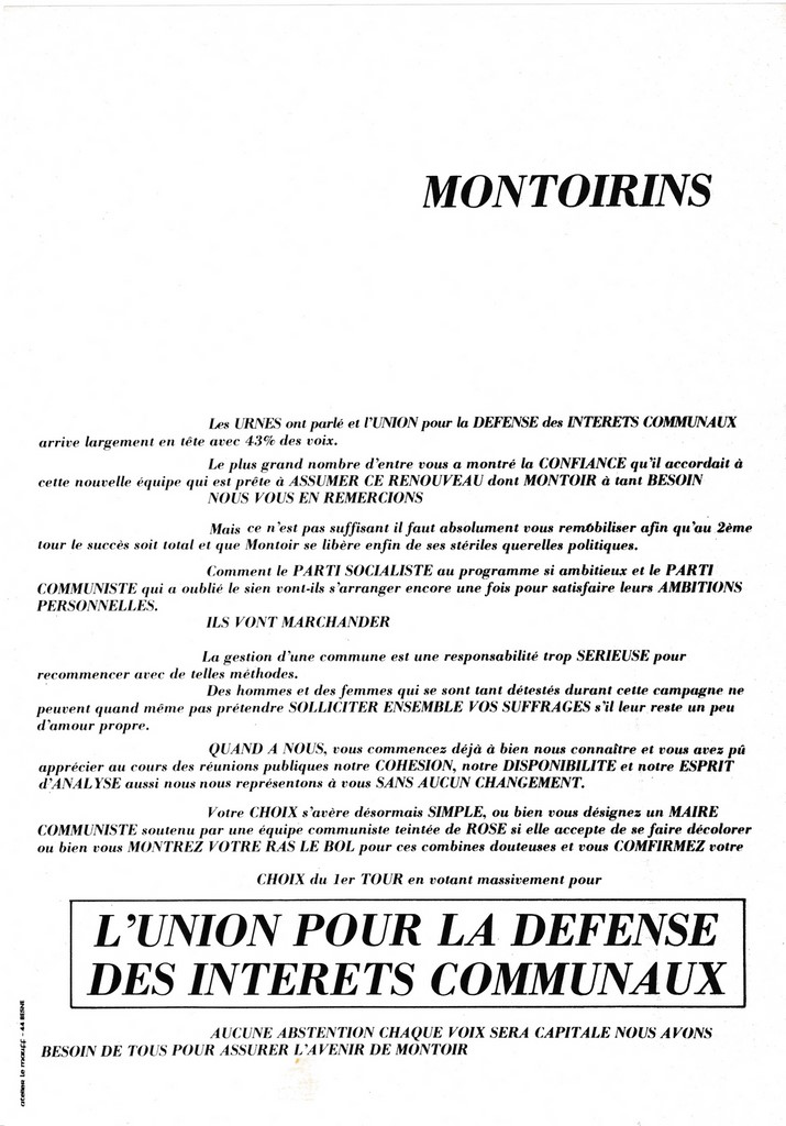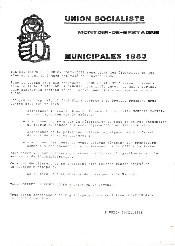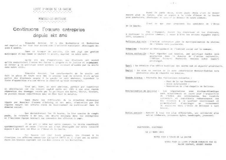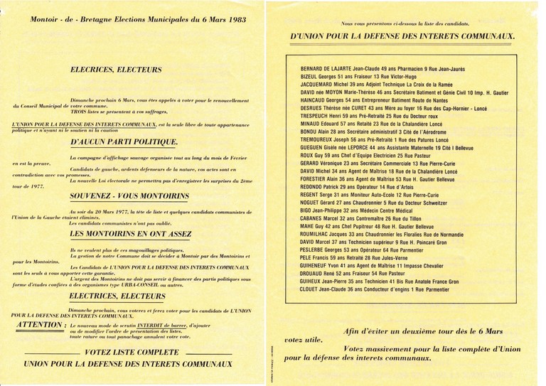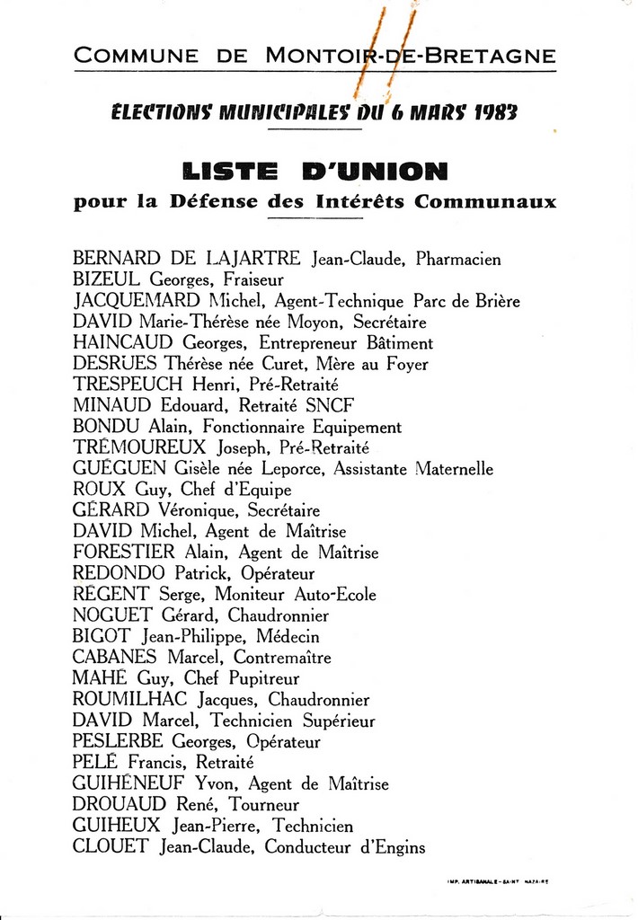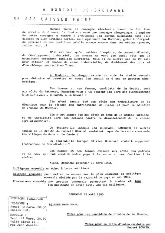 Liste Union de la gauche : 22 élus (51.24% 1398 voix) Hubert Bouyer,