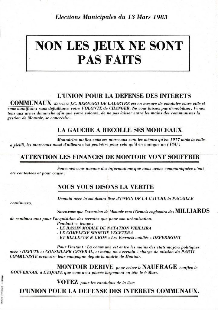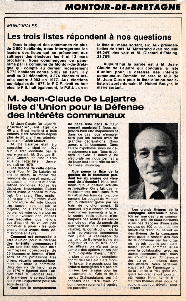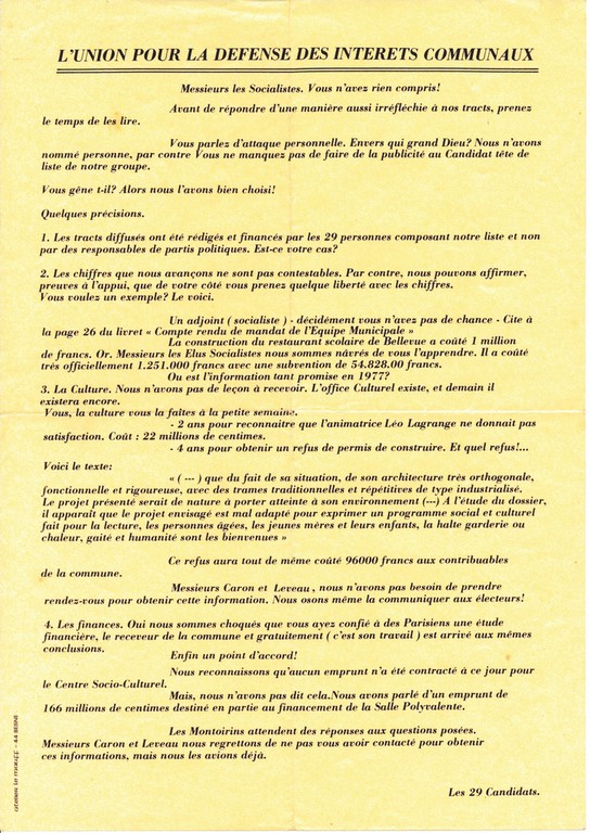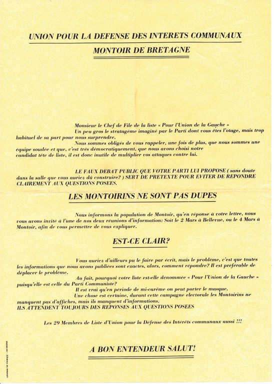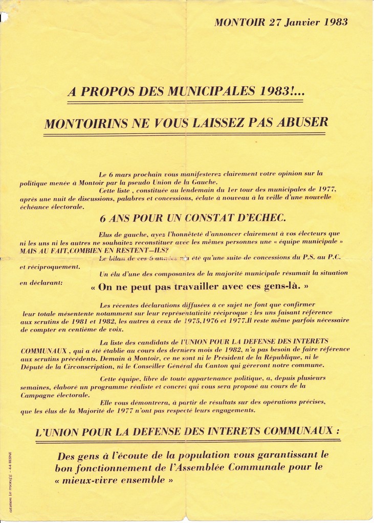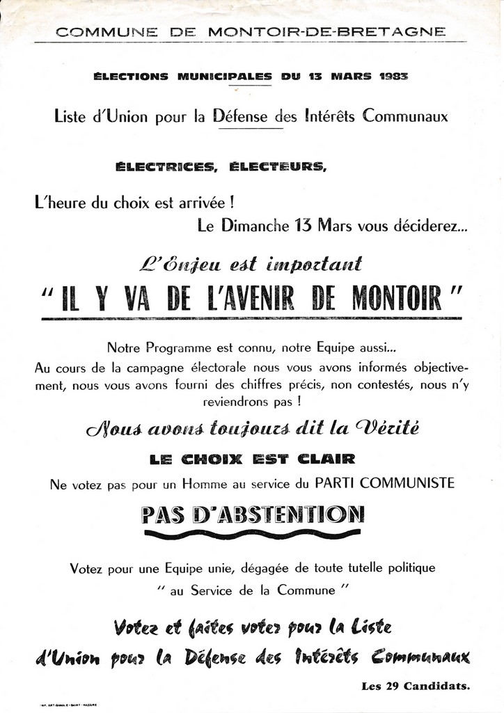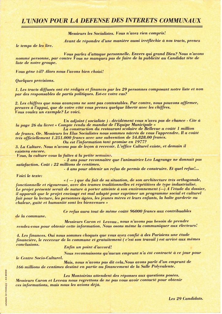 Liste Union de la gauche : 22 élus (51.24% 1398 voix) Hubert Bouyer,