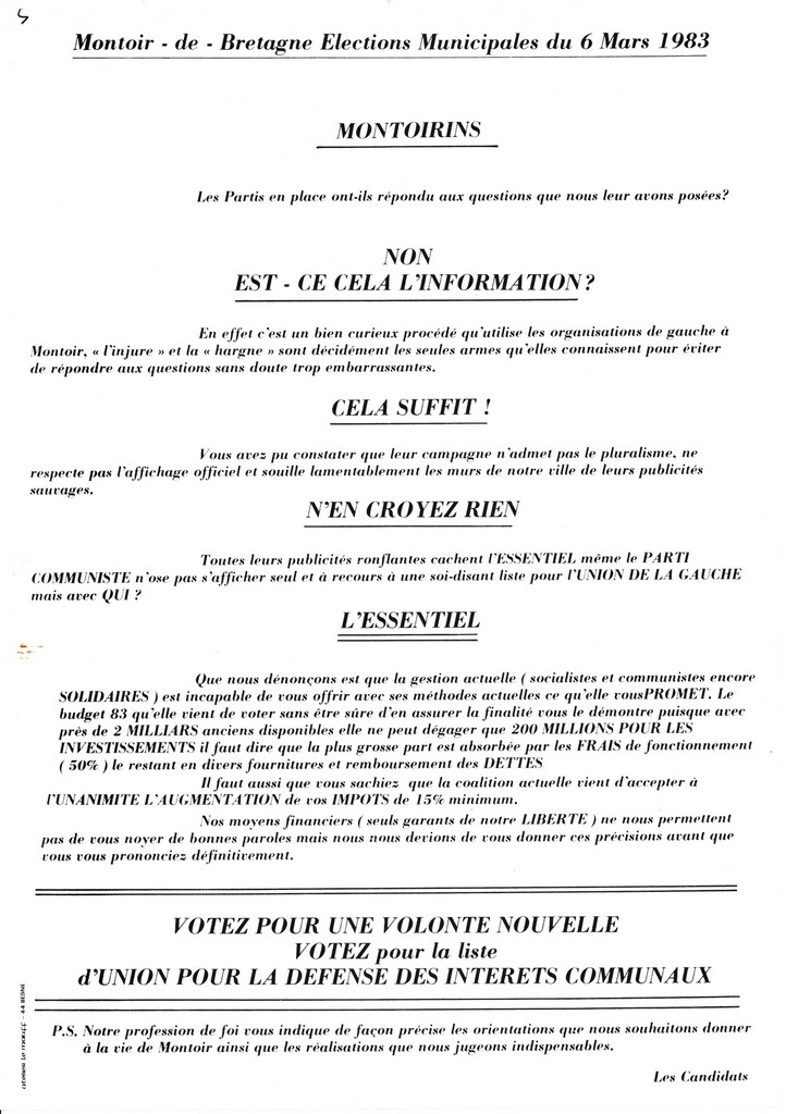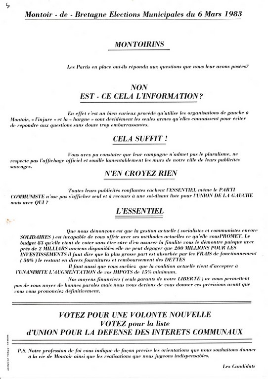 Liste Union de la gauche : 22 élus (51.24% 1398 voix) Hubert Bouyer,