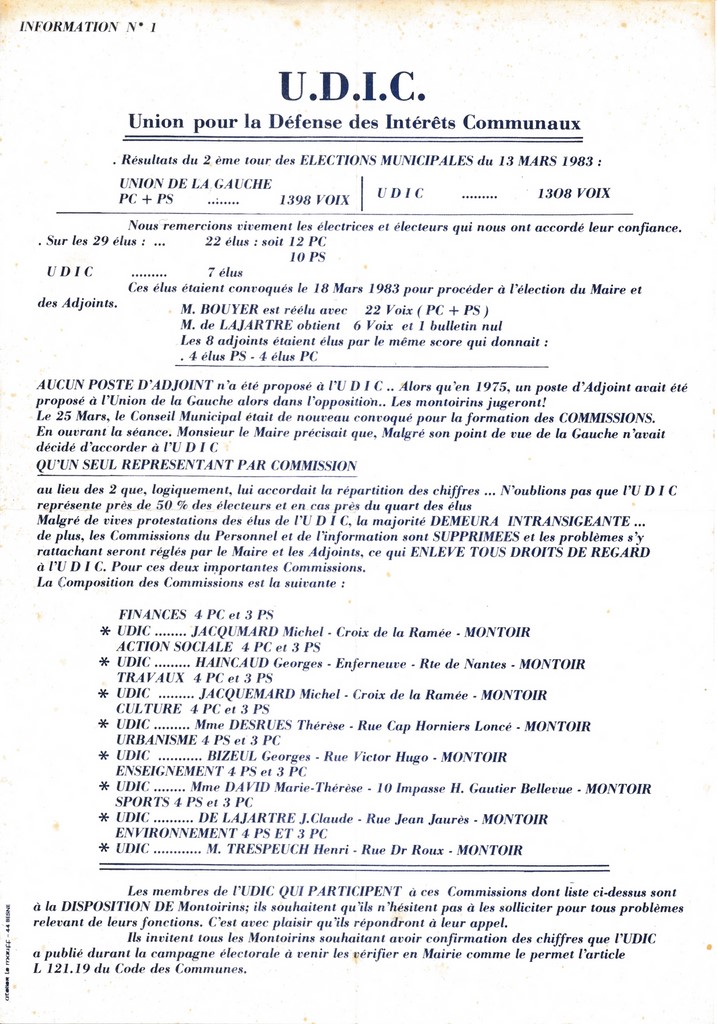 Liste U.D.I.C : 7 élus ( 47.94% 1308 voix)
