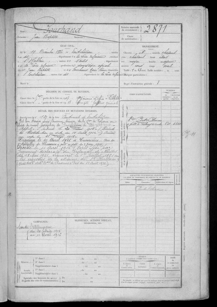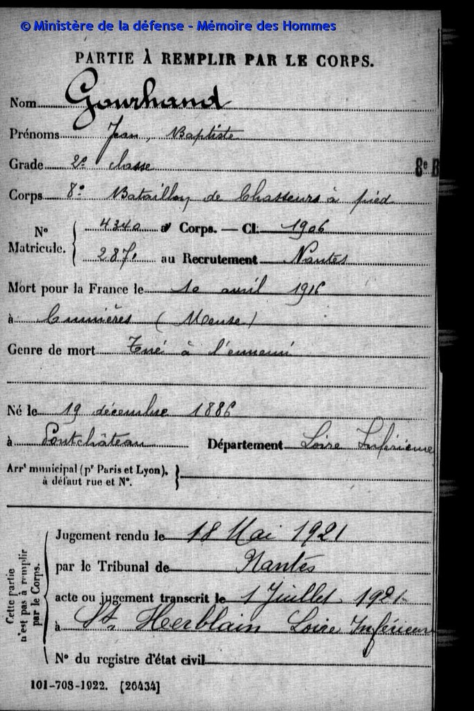 GOURHAND Jean Baptiste Retour Guerre 14-18