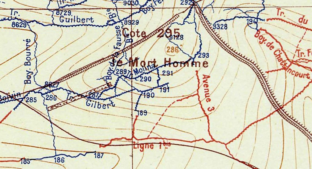 Une seconde ligne passait par la cote 265, située à quarante mètres en arrière de la cote 295 et que, pour les besoins de la cause, le communiqué ne tarda point de présenter comme faisant partie du système de crêtes du Mort Homme.