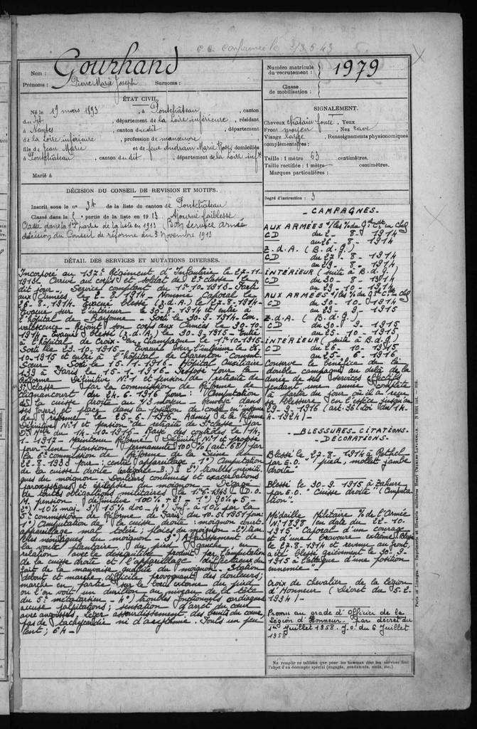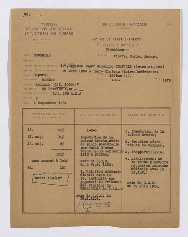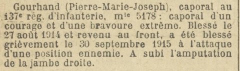 GOURHAND Pierre-Marie Jose Retour Guerre 14-18