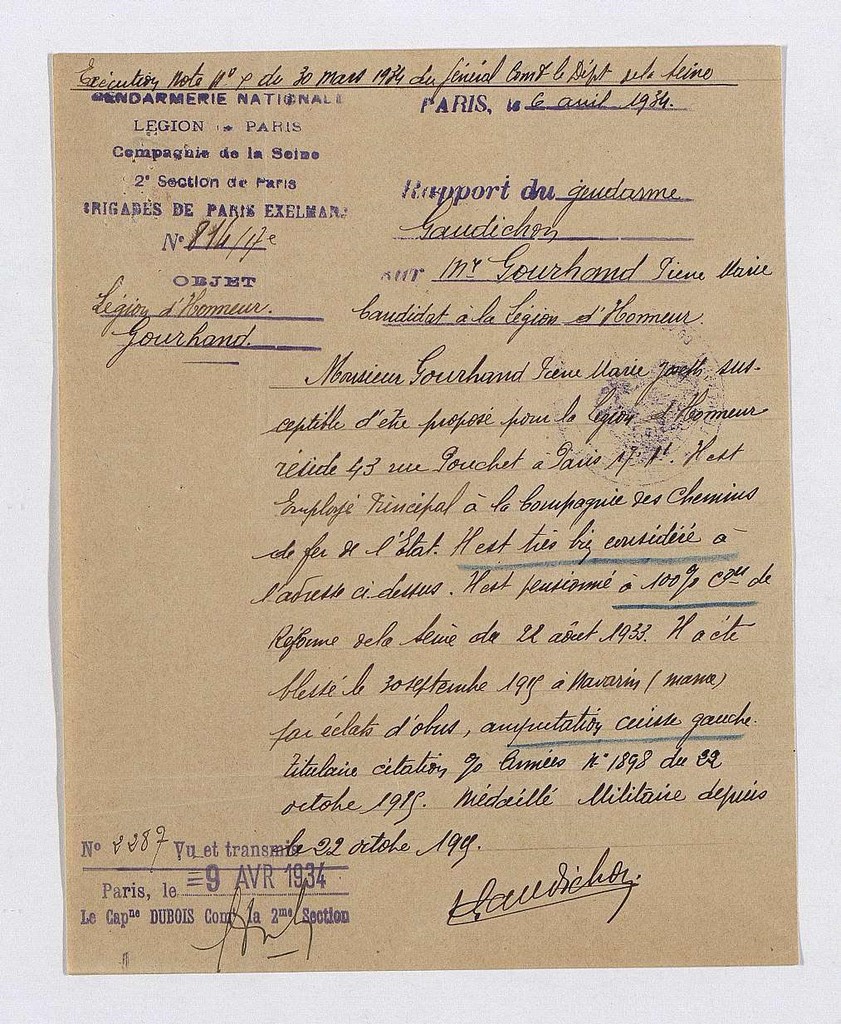 - 5 février 1934 Croix de Chevalier de la légion d'Honneur