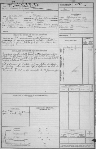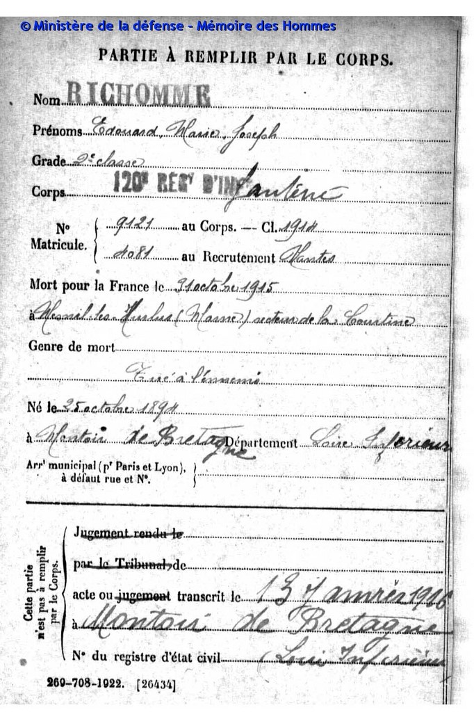 RICHOMME Edouard (1894-1915) Retour Guerre14-18