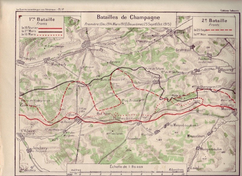 Le 26 au soir, le 1er bataillon entre à son tour en ligne pour aller occuper les tranchées à 3 kilomètres au nord de Mesnil-les-Hurlus. Sa rnise en place est difficile : il perd 20 tués, dont le Sous-Lieutenant NORMANDIN; 166 blessés, dont les Sous-Lieutenants SARAZIN et THUILLIER.